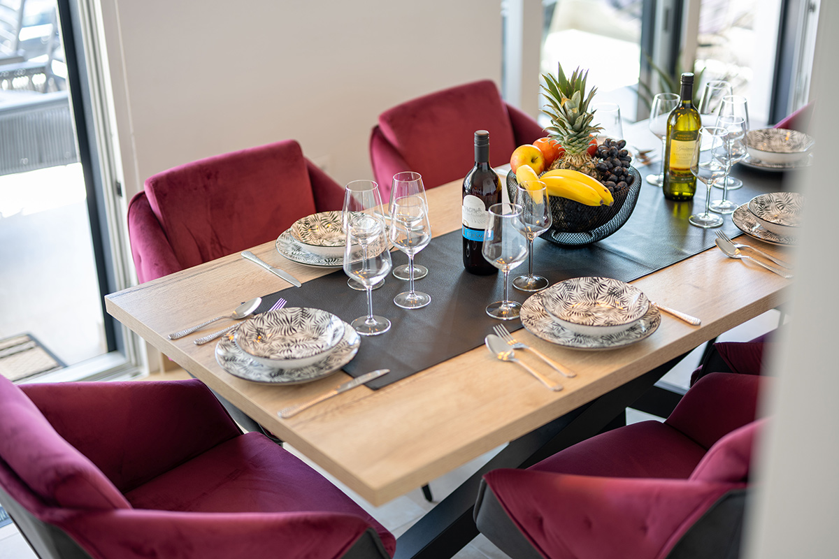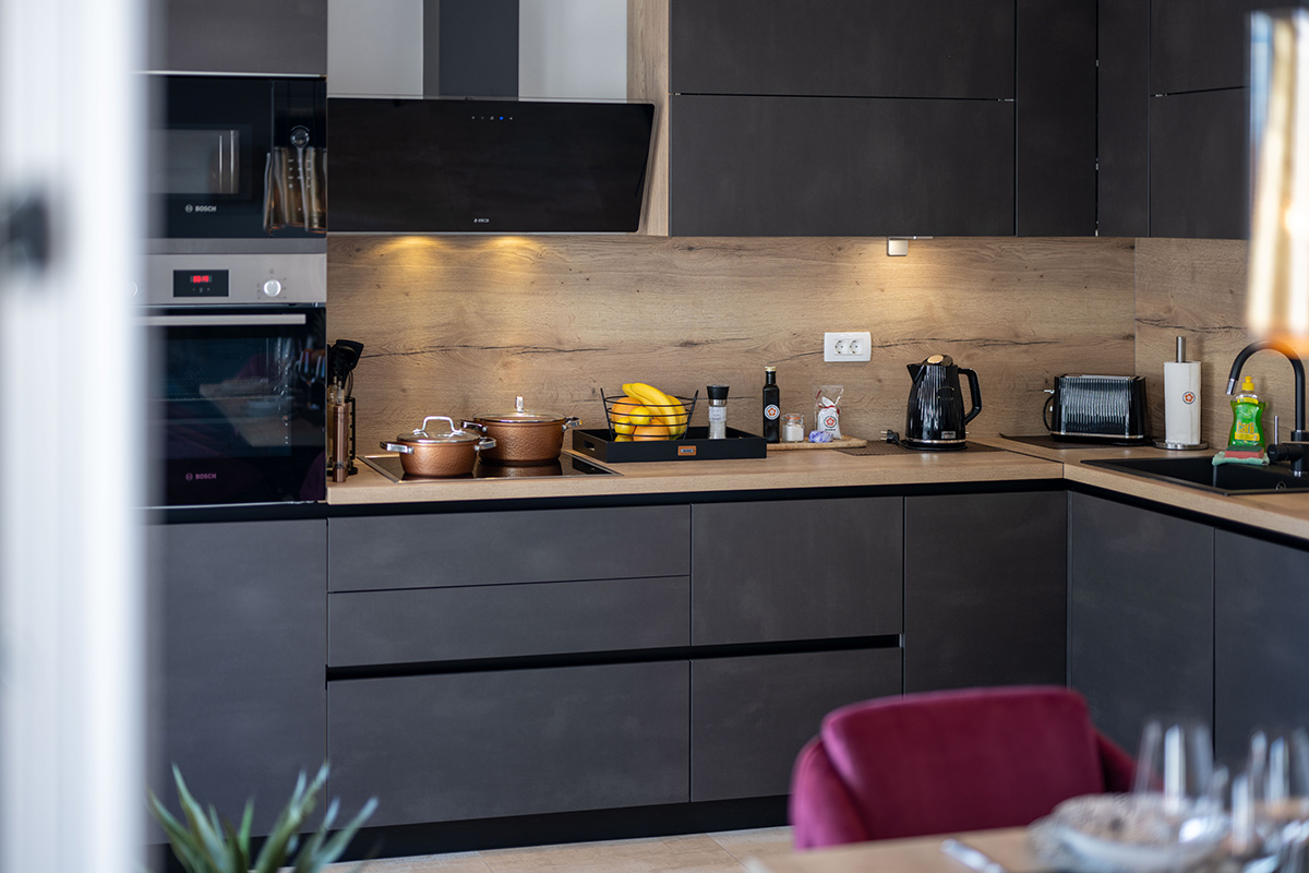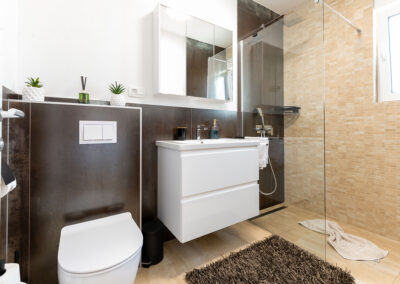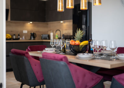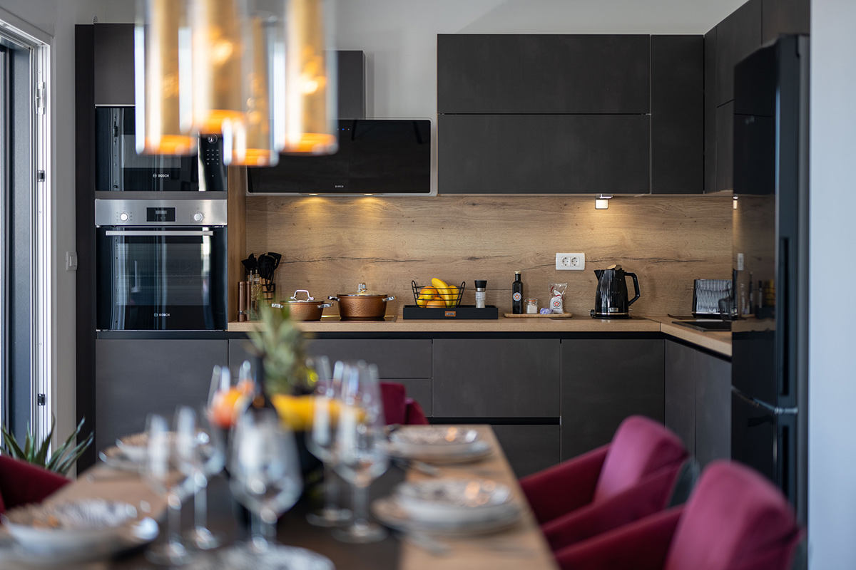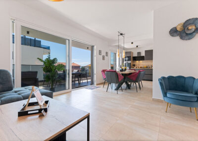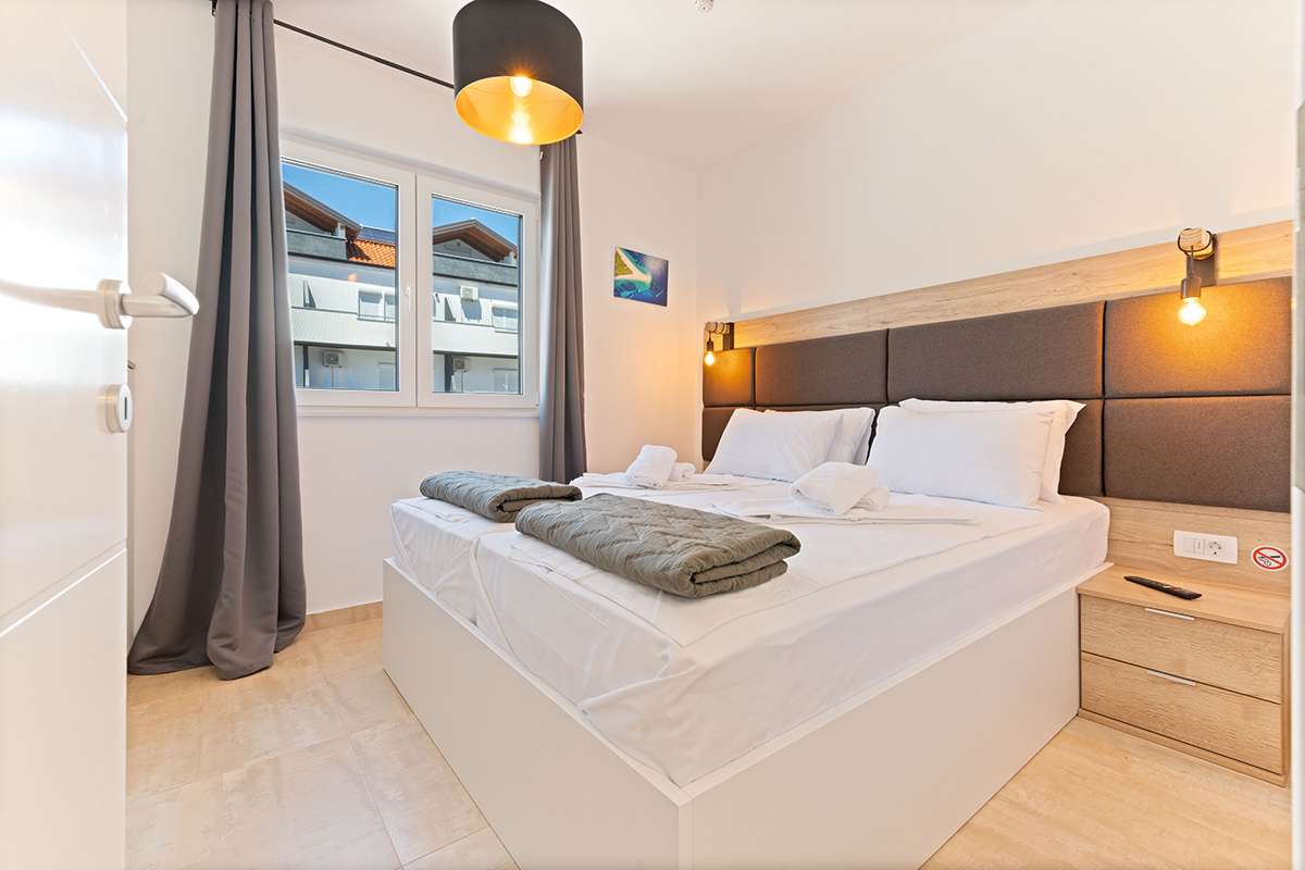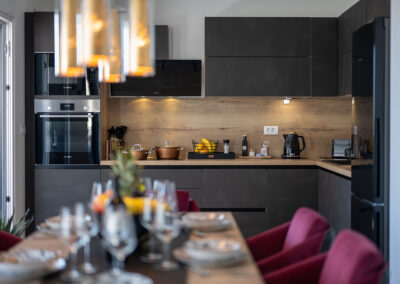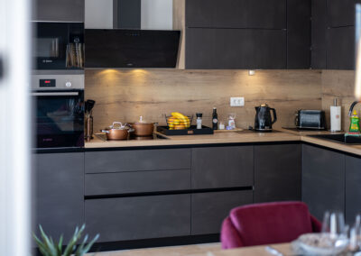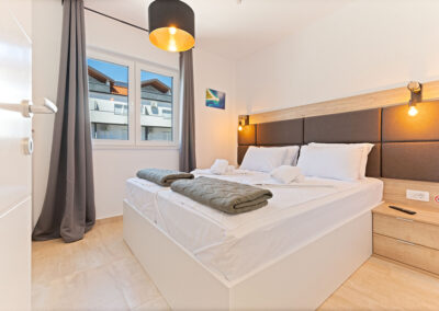 The 4-star apartment Tino (category: Premium) is the ideal choice for guests who appreciate comfort, style, and modern amenities in perfect combination. With a generous 100 m² of living space, it offers enough room for families or small groups without compromising on coziness and a feel-good atmosphere. The apartment’s premium amenities include an open-plan, modern kitchen, elegant bathrooms, stylishly furnished living room and bedroom, as well as air conditioning and high-speed Wi-Fi, which make your stay particularly pleasant.