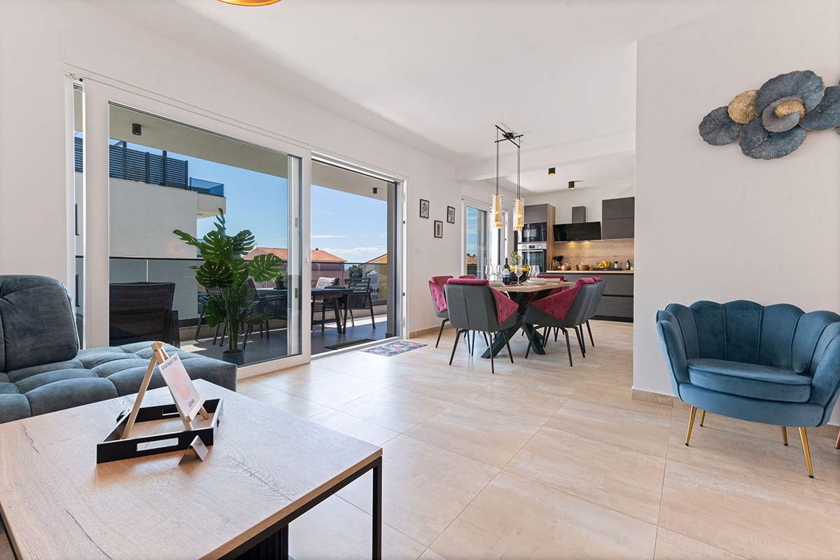 The apartment Tino impresses with its stylish ambience, high-quality furnishings, and soothing tranquility—a place to relax that transforms every minute on the Croatian Adriatic into an unforgettable vacation experience.